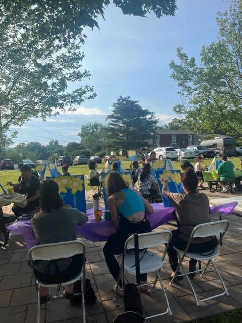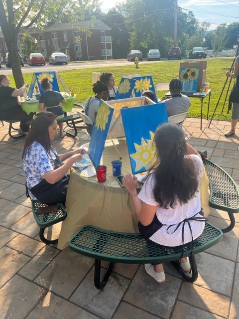 Residents of Hudson View Park enjoyed wine while painting a sunflower in a vase on canvas. This Paint & Sip was hosted by Vincent's Eat-Paint-Love Studio in Beacon.
